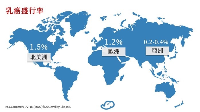 要回答這個問題之前,大象醫師先來比較了一下美洲與亞洲的乳癌盛行率,在2002年的一篇研究中,比較了25個國家五年內的乳癌盛行率,發覺北美洲是1.5%;西歐是1.2%;而亞洲則是僅有0.3-0.5%。所以說…我們就可以大膽聲稱豆類製品的飲食習慣是造成乳癌發生率低的原因嗎?