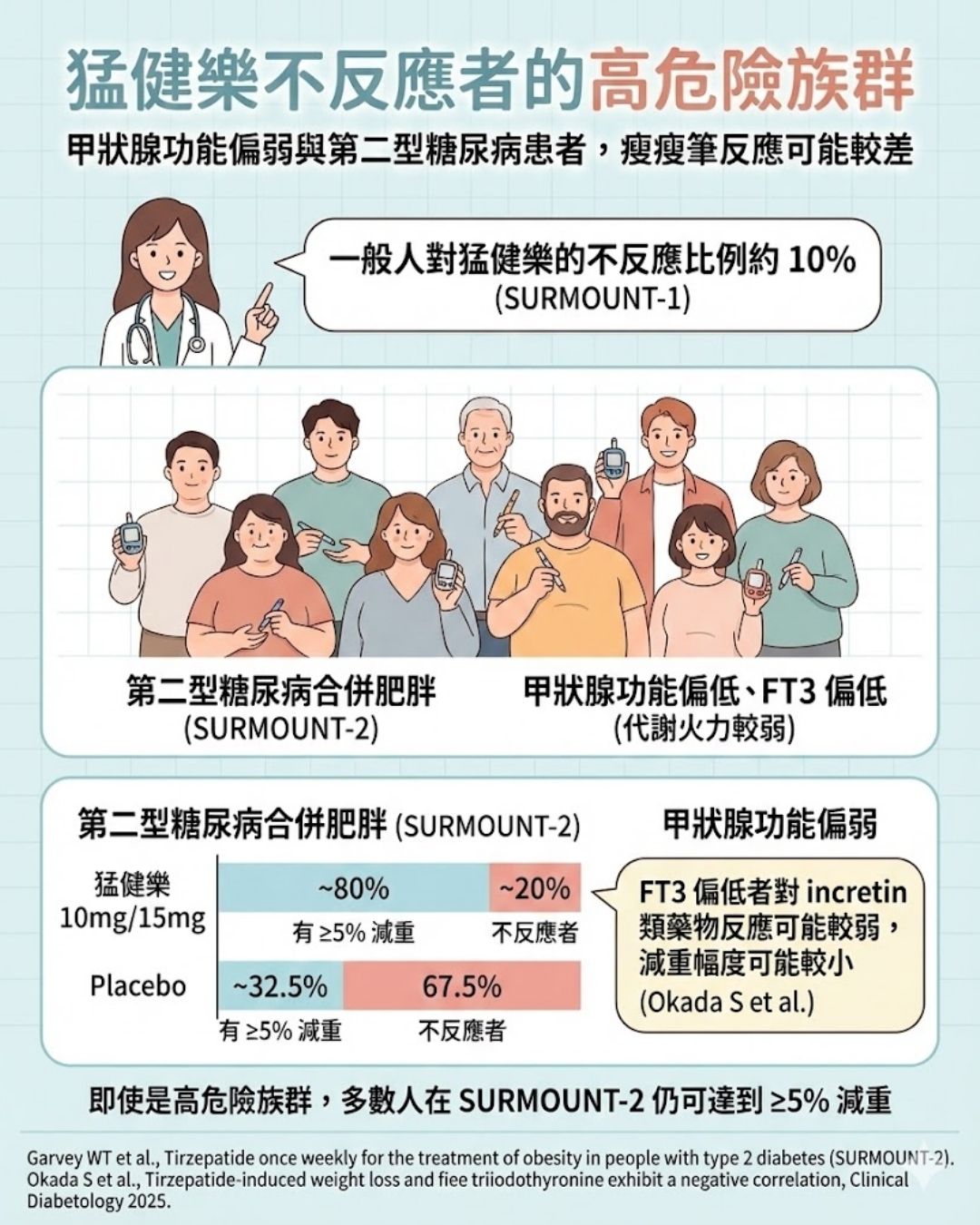 有一篇研究發現:游離三碘甲狀腺素越高的人,打類似的瘦瘦筆,體重下降幅度越大。