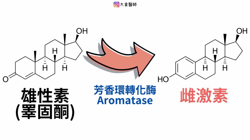 而以賀爾蒙來說的話,脂肪細胞會讓體內一種神奇的「芳香環轉化酶Aromatase」增加