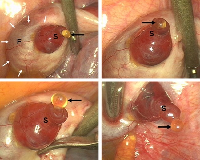 每顆濾泡外面都有顆粒層細胞(Granulosa cell),最外層被濾泡膜(Theca cell)包圍,少量的LH會刺激theca cell製造雄性素,在顆粒層細胞中FSH會讓這些雄性素轉換成雌激素。